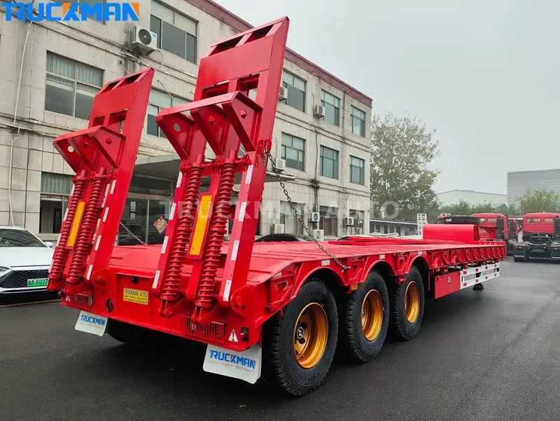 The 50 Ton low bed trailer is an excellent transport helper; he can transport a wide range of goods with outstanding reliability. With the advanced production technology, reliable quality parts make 50-ton low-bed trailers viral in the logistics industry. The shallow loading platform makes it easier to maneuver large cargoes during loading and unloading without the risk of overturning.